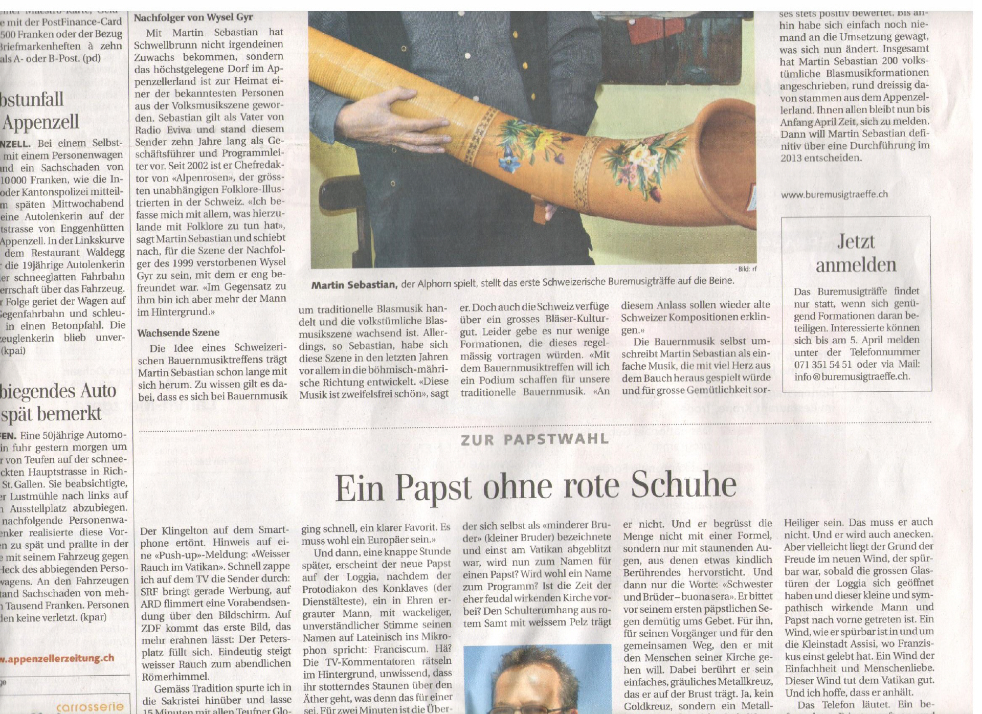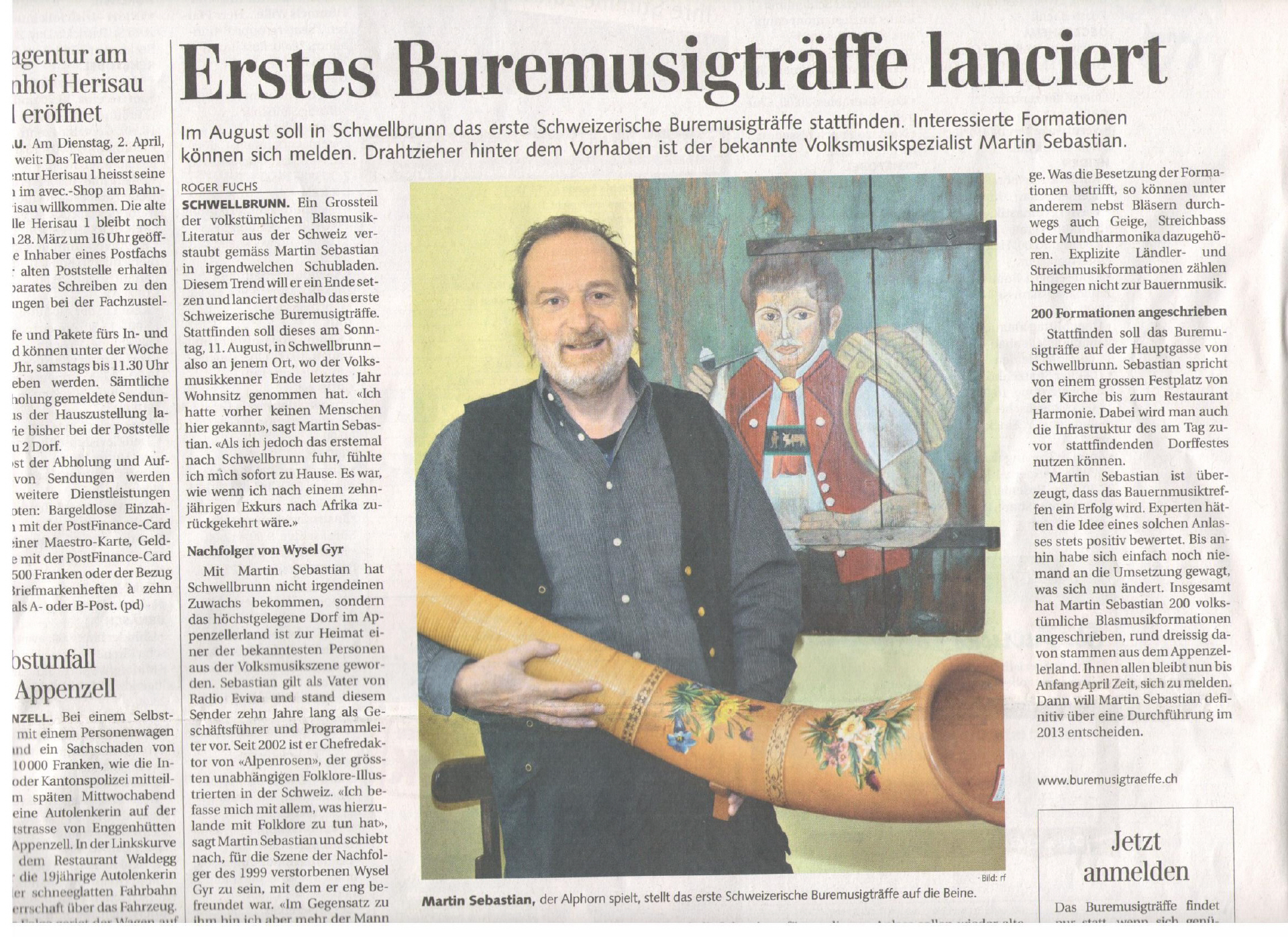 Um den Artikel vom 15. März 2013 zur Lancierung des Schweizerischen Buremusigträffe anzuschauen, bitte anklicken: Seite 1