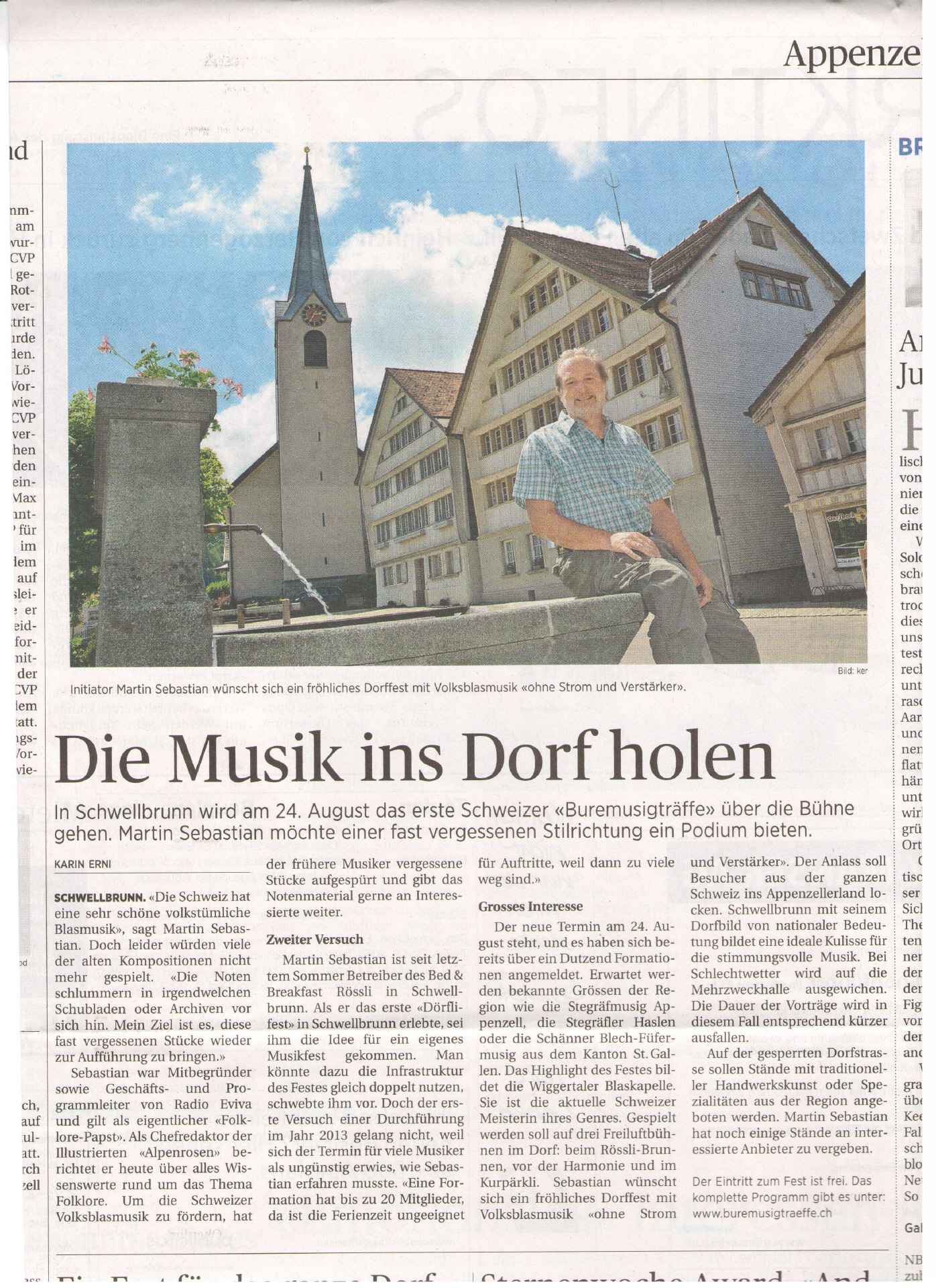 Um den Artikel zum geplanten Schweizerischen Buremusigträffe anzuschauen, bitte anklicken: Artikel vom 28. Mai 2014