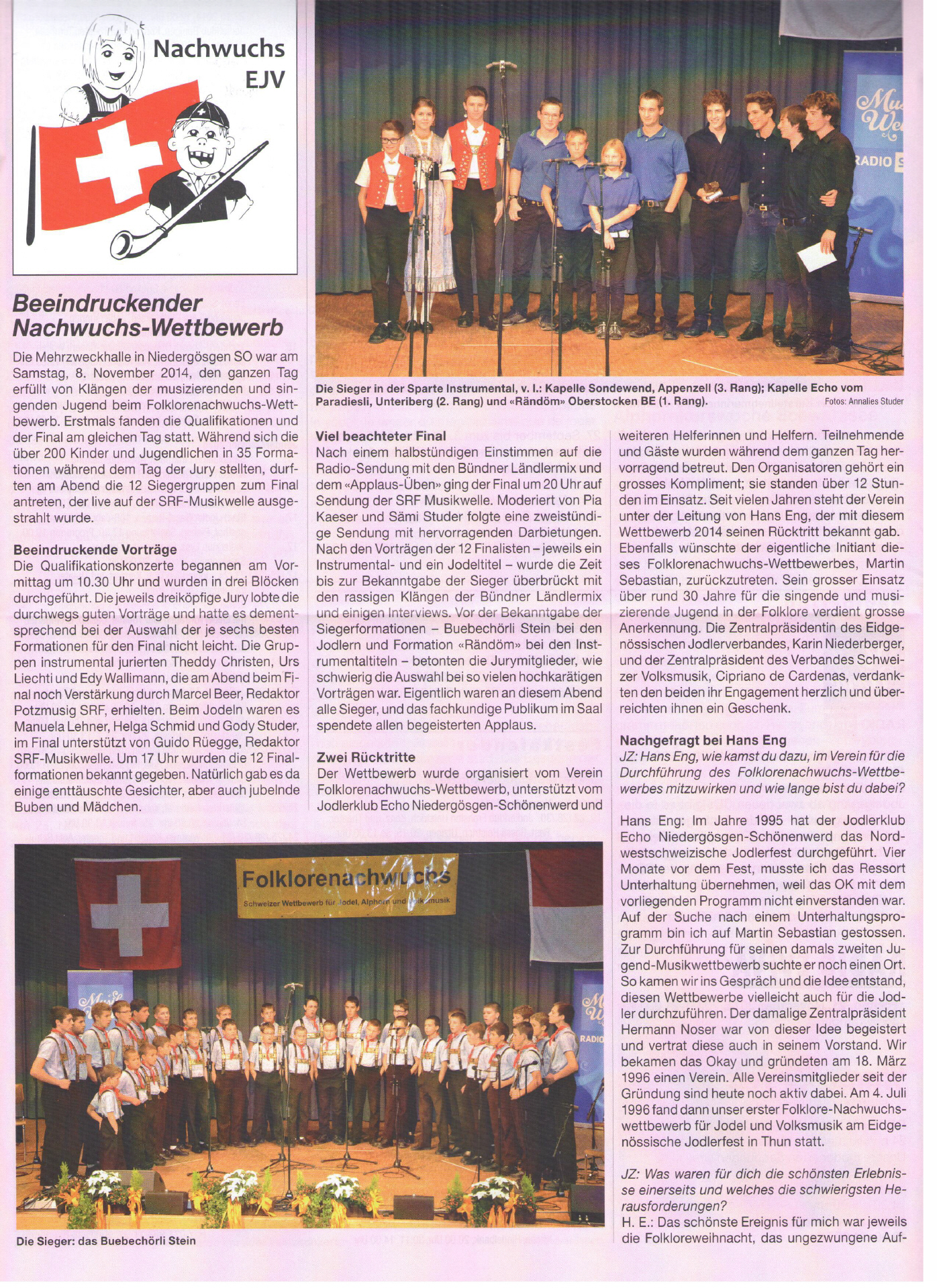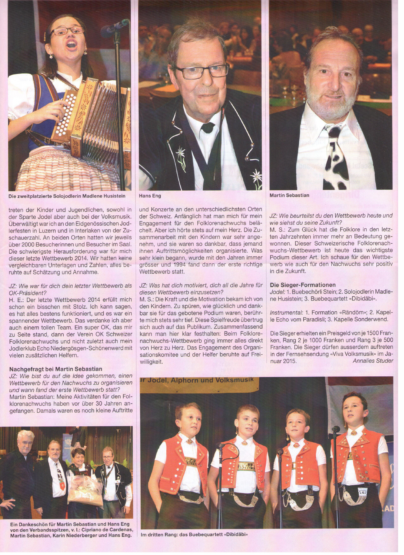 Um den Artikel über Martin Sebastian in der Jodlerzeitung im November 2014 - die nationale Zeitschrift des Eidgenössischen Jodlerverbandes EJV anzuschauen, bitte anklicken: Seite 1