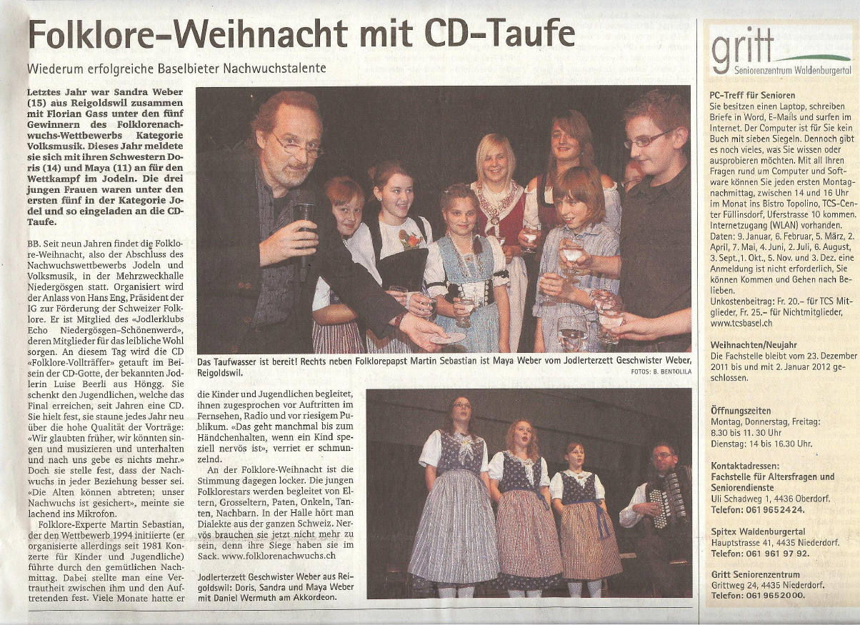 Um den Artikel im Oltner Tagblatt vom Folklorenachwuchs-Wettbewerb von Martin Sebastian anzuschauen, bitte anklicken: Artikel vom 15. Dezember 2011